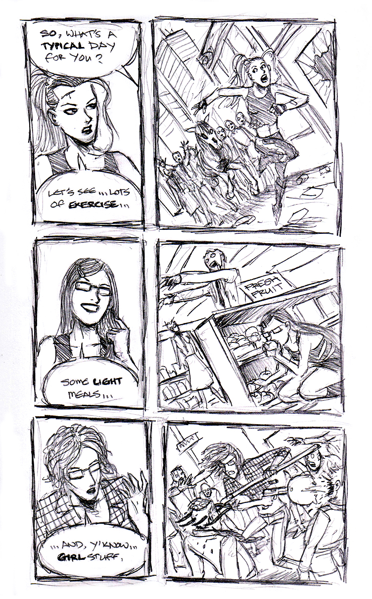 - A rough comic to quickly develop ideas and work on comedy timing.